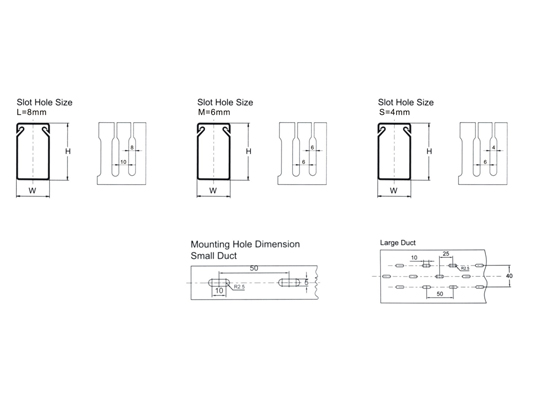 型號 | 出線孔尺寸 | 寬×高 W×H(mm) | 電線容量 | 槽底固定孔 | Download |