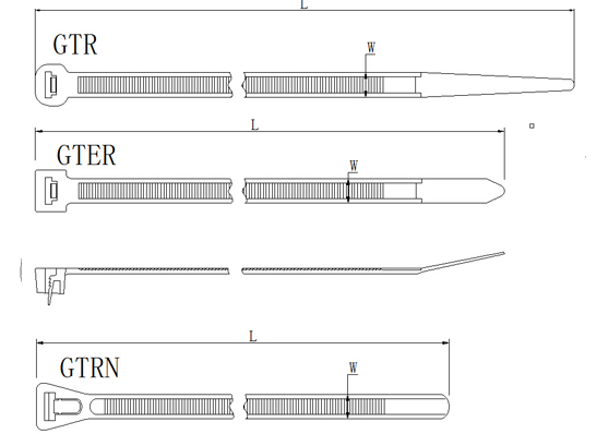 Part No.型號(hào) 1000PCS/bag | Length 長(zhǎng)度 mm(inch) | Width 寬度 mm(inch) | Max.Bundle Dia 最大束徑 mm(inch) | Min.loop Tensile Strength 拉力 kg(lbs) | 圖紙下載 Download |