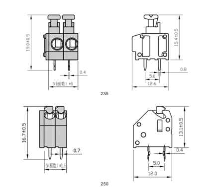 | 235 | 2~ | 5.0mm | 24A 250V | 105℃(221℉) | 0.5-2.5,mm2Rigid/flexible | 下載 |