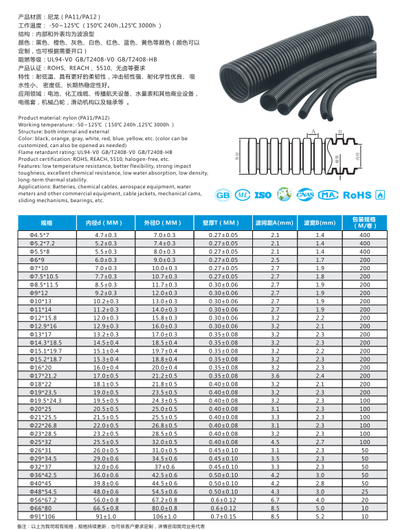 PA11/PA12尼龍阻燃波紋管_波紋管系列