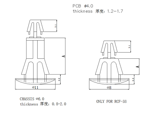 用途:一端固定機板上,另一端支撐PC板,避免下陷造成短路,PC板免鉆孔。