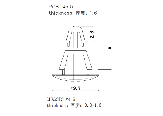 用途:一端固定機板上,另一端支撐PC板,避免下陷造成短路,PC板免鉆孔。