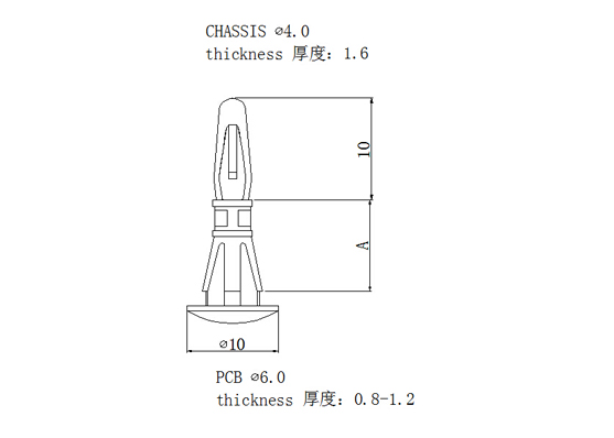 用途:一端固定機板上,另一端支撐PC板,避免下陷造成短路,PC板免鉆孔。