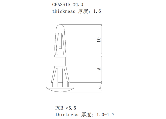 用途:一端固定機(jī)板上,另一端支撐PC板,避免下陷造成短路,PC板免鉆孔。