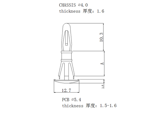用途:一端固定機板上,另一端支撐PC板,避免下陷造成短路,PC板免鉆孔。